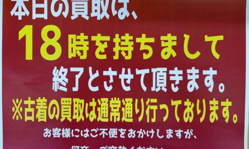 お知らせ■本日の買取は18時をもちまして終了とさせていただきます。■