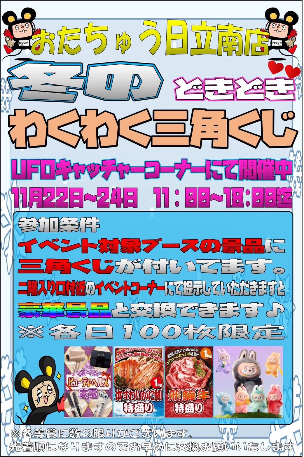 🔔プライズからイベントのお知らせ🔔 2025年11月21日 🔔プライズからイベントのお知らせ🔔 今週末は三角くじだ‼️ ✨1日100枚限定✨ 対象ブースの景品に付いている 三角くじをゲットして 豪華商品をゲットしよう‼️ 開催日時は 22日.23日.24日の3日間にて 11時~18時まで開催します。 是非、ご来店お待ちしております✨