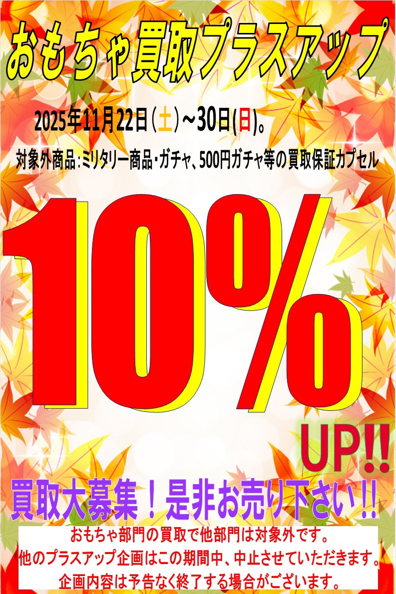 ★《11月22日~30日》おもちゃ買取10%UP実施‼️★ 2025年11月22日 おもちゃ部門よりお知らせ🎄 おもちゃ買取10%UP実施‼️ いきなりですが、本日より買取UP始めます🔥 在庫がまだまだ足りません💦 売るなら今がチャンス❗️ 旧作から新作までどしどしお持ち込み下さい♪ お待ちしております💨