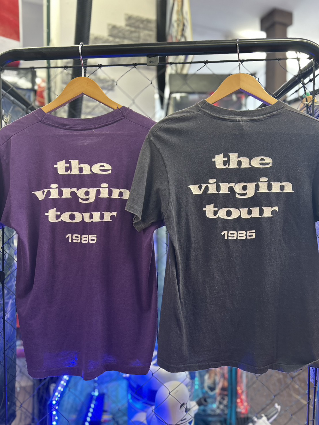 【MADONNA】 “THE VIRGIN TOUR 1985” 買い取りました! 2026年4月27日 本日もご来店いただきまして誠にありがとうございます😊 【MADONNA】 “THE VIRGIN TOUR 1985” size:Black M Purple M(相当) 買取させていただきました⭐️✨ 是非店頭にてご覧ください🤗🤗 ※商品のお問い合わせはご遠慮ください